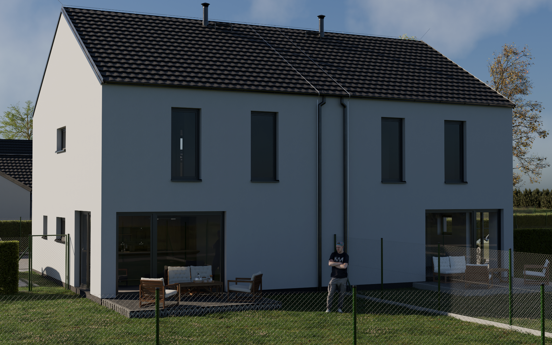 Patrový dvojdomek Lenka je skvělou volbou pro ty, kdo hledají prověřenou klasiku a kompaktní řešení bydlení. Z prostorného zádveří se dostanete rovnou na WC, do technické místnosti nebo do velkorysé kuchyně spojené s jídelnou, obývacím pokojem a vstupem na terasu. V přízemí najdete také sklad se samostatným vstupem zvenku. Prostor v patře je prakticky a příjemně rozložený mezi ložnici, dva pokoje, koupelnu a šatnu.